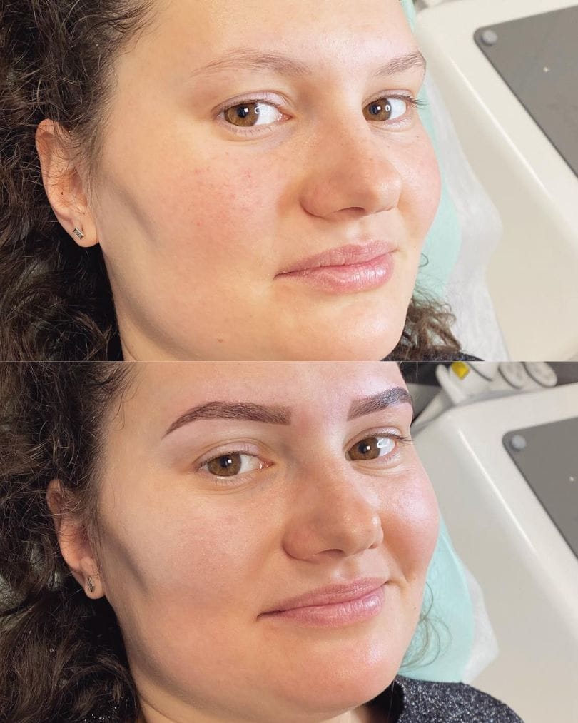 zagęszczone optycznie, symetryczne i naturalnie podkreślone brwi.